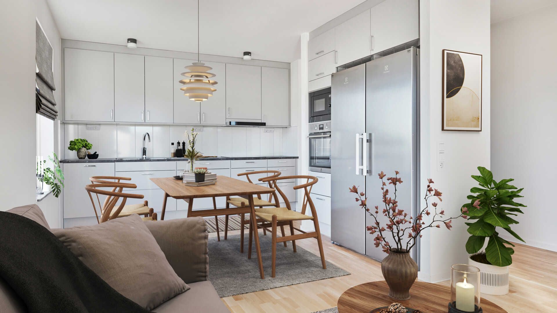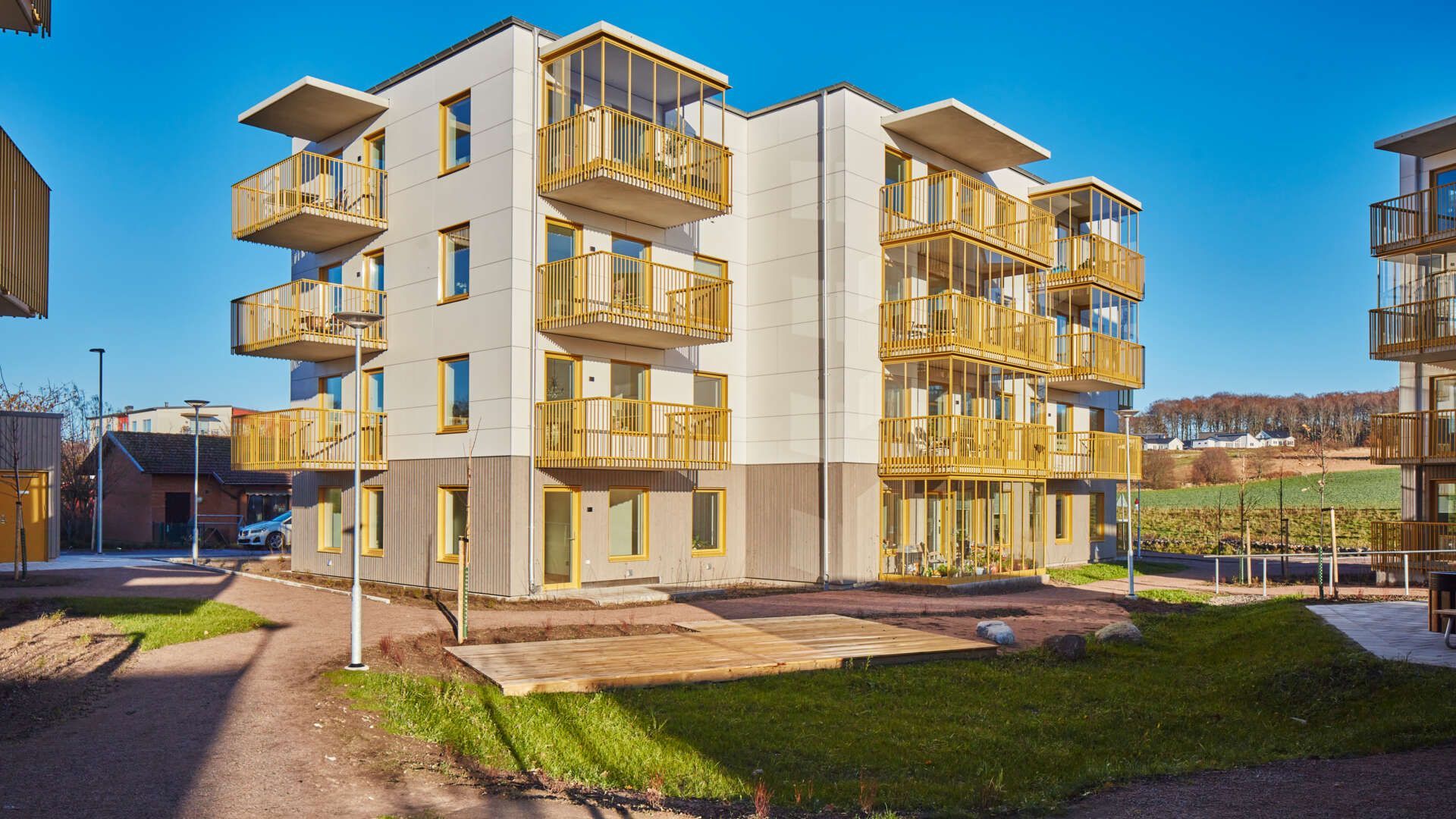 Bostäderna ramar in en mysig innergård där alla bostäder har balkong vända mot öst, syd eller väst. På innergården finns även en separat byggnad med en gemensamhetslokal med uteplats och en gästlägenhet som de boende kan boka för långväga gäster.