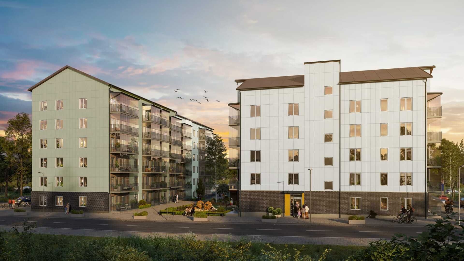 I kvarteren intill finns nya gallerior och butiker. Längs med Midnattsolssvägen bygger vi 66 lägenheter fördelat på två fastigheter, ett sexvåningshus och ett femvåningshus där hiss är en självklarhet. Tack vare husens generösa höjd kommer det erbjudas insynsskyddade lägen med fina vyer.