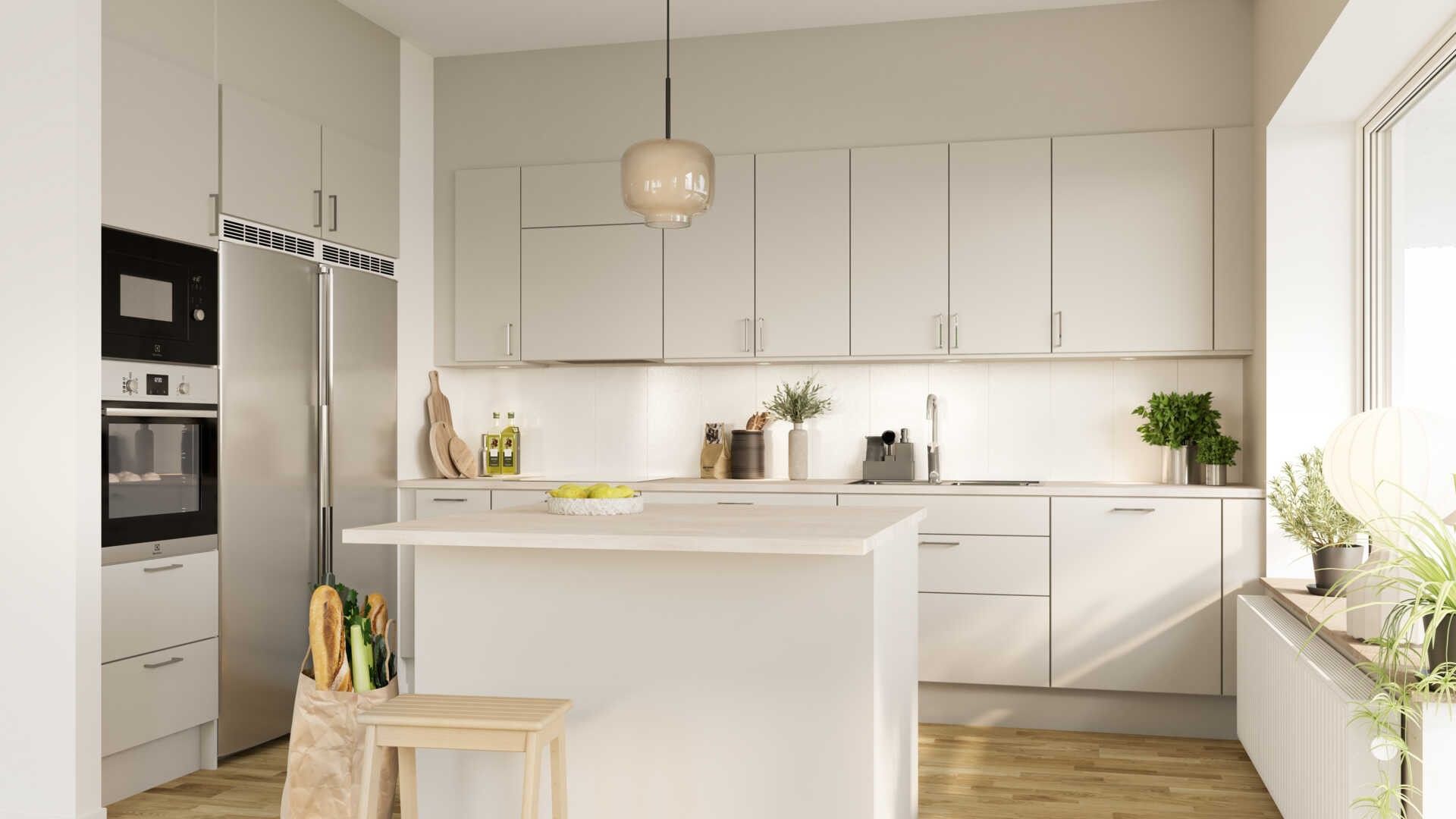 Vi har plockat in flera bekväma lösningar som sällan återfinns i lägenheter så som egen groventré, separat tvättstuga och köksö att skåla runt med gästerna samtidigt som maten puttrar i grytan.