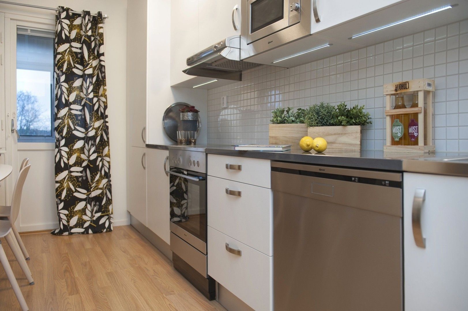 Bostäderna har ljusa väggar, ekparkett, moderna kök med rostfria vitvaror och tålig bänkskiva i kompositsten. Maten lagar du på spisen med glaskeramikhäll. Badrummet är helkaklat med behaglig golvvärme, här finns även tvättmaskin och torktumlare.