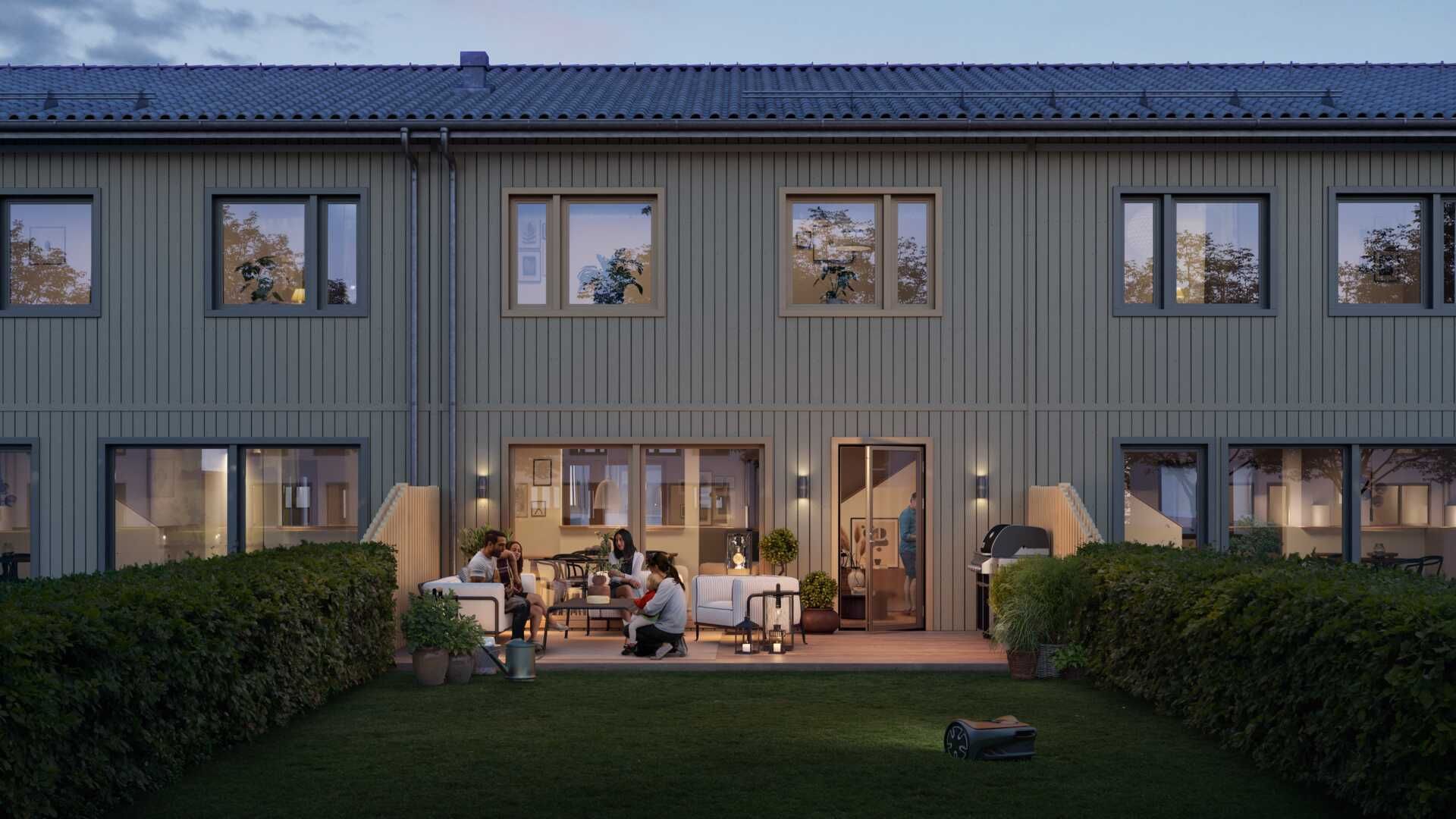 Självklart är våra hus uppförda i bra kvalitet. Dessutom är mycket extra inkluderat som t ex häckar, gräsmatta, förråd, plank, stenläggning/asfalt osv. Det innebär att du inte behöver fundera på om stora kostnader tillkommer efter att du flyttat in i radhuset.